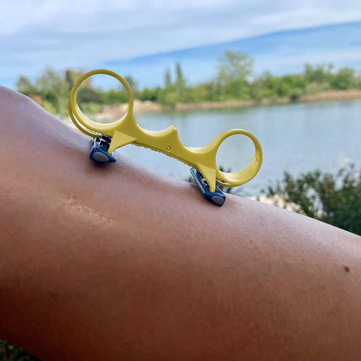 The protective grilles on the razor blades allow for a safe shave in all directions of growth without leaving traces. The safety double shaver glides smoothly over the skin and protects against injury.